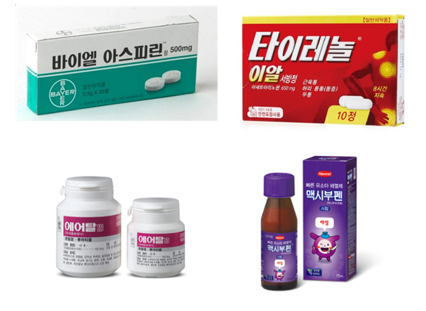 진통제: 아세트아미노펜(타이레놀정 C), 이부프로펜, 나프록센 등의 비스테로이드성 소염진통제